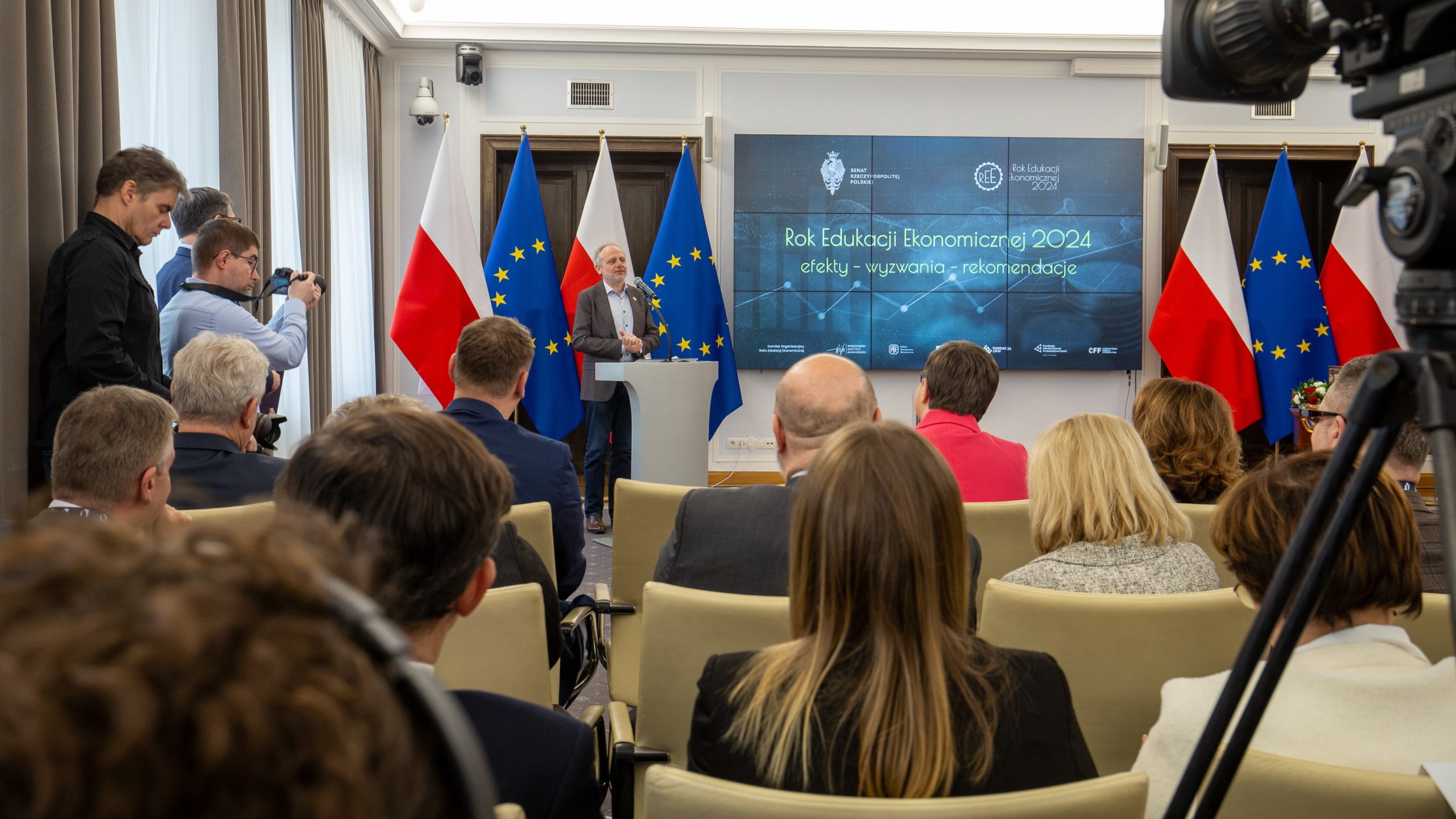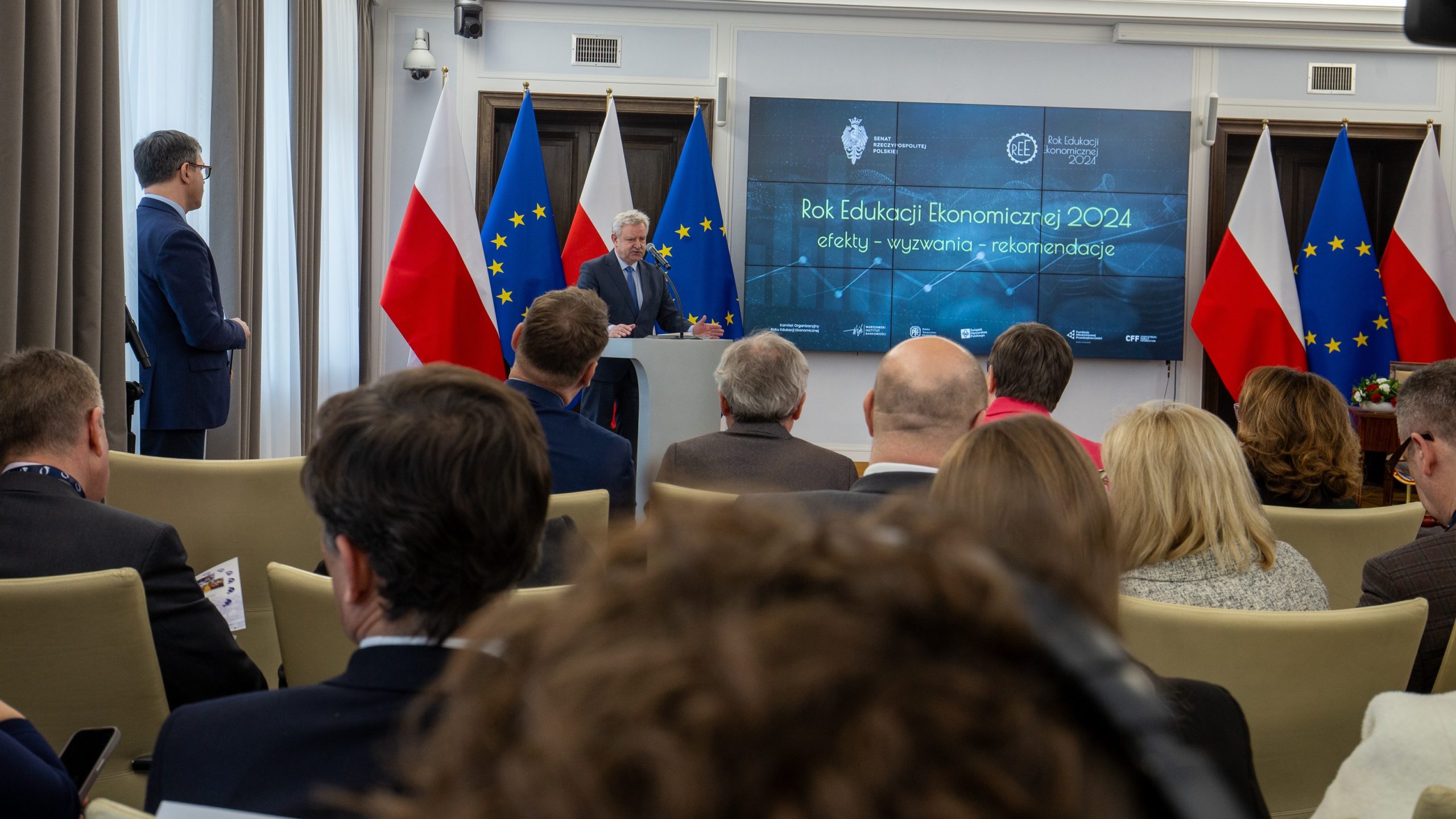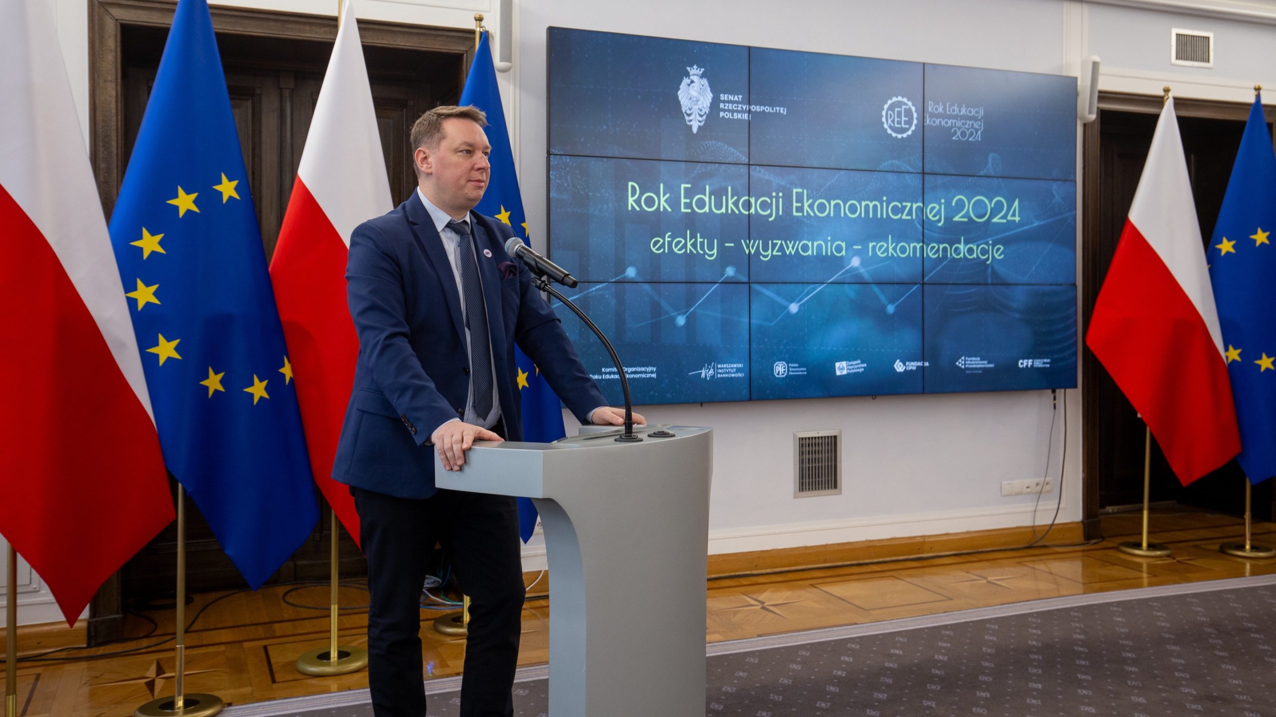Jednym z przesłań REE 2024 pozostających z nami jest „Praca-Oszczędzanie-Inwestowanie” a rozpoczynający się rok 2025 to także ważna rocznica w kalendarzu edukacji ekonomicznej i rozwoju Polski – 100 lat temu powstały Szkolne Kasy Oszczędności. W 1925 r., w nawiązaniu do rekomendacji wielu ekonomistów oraz Światowego Kongresu Ekonomicznego z 1924 r., minister wyznań i oświecenia publicznego Stanisław Grabski wydał Okólnik w sprawie propagandy oszczędności w szkole, jako elementu kształtowania postaw wspierających budowanie kapitału niezbędnego dla bezpieczeństwa ekonomicznego obywateli i rozwoju gospodarki narodowej. Był to pierwszy krok do promowania idei oszczędzania wśród uczniów polskich szkół, a Polska dołączyła do grona państw, które uczą swoich najmłodszych obywateli oszczędzania. Właśnie dlatego na konferencji w Senacie zapowiedziano również realizację ogólnopolskich działań i kampanii promujących w 2025 r. idee oszczędności i budowania krajowego kapitału
