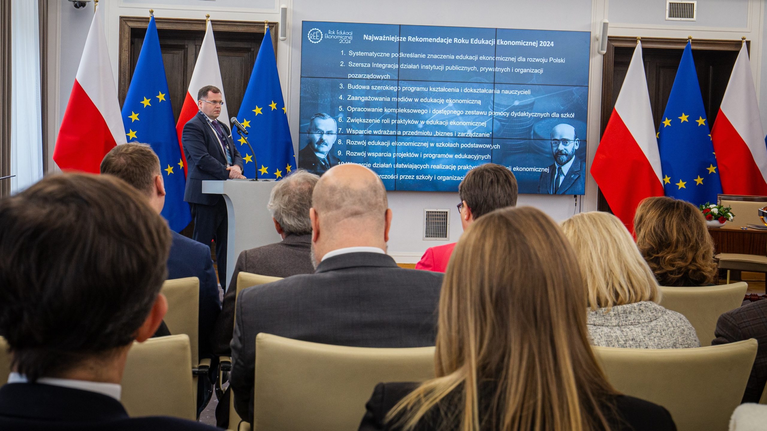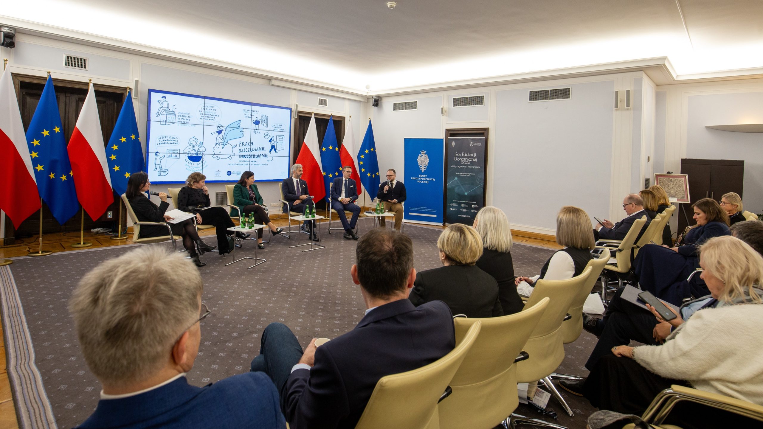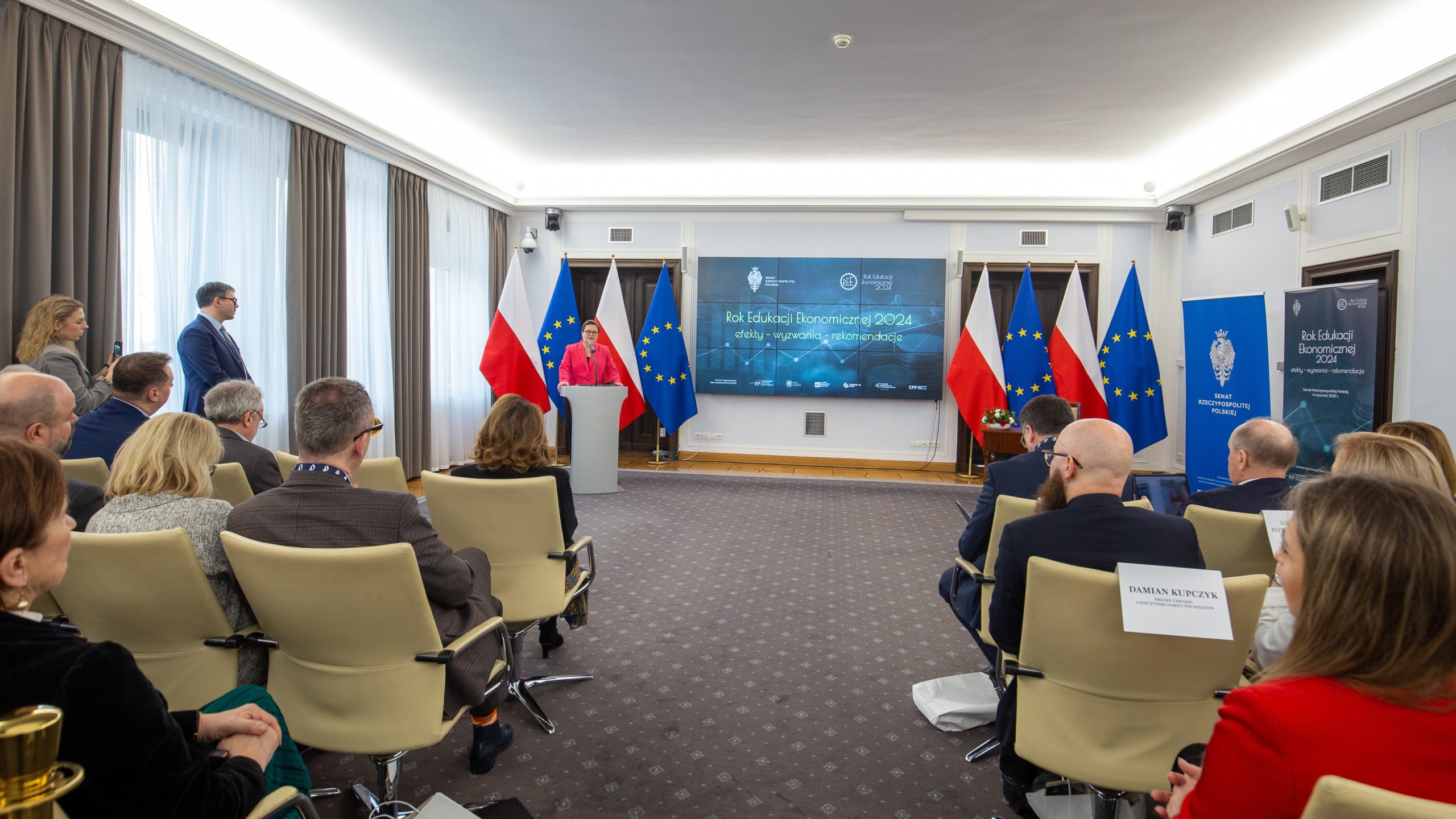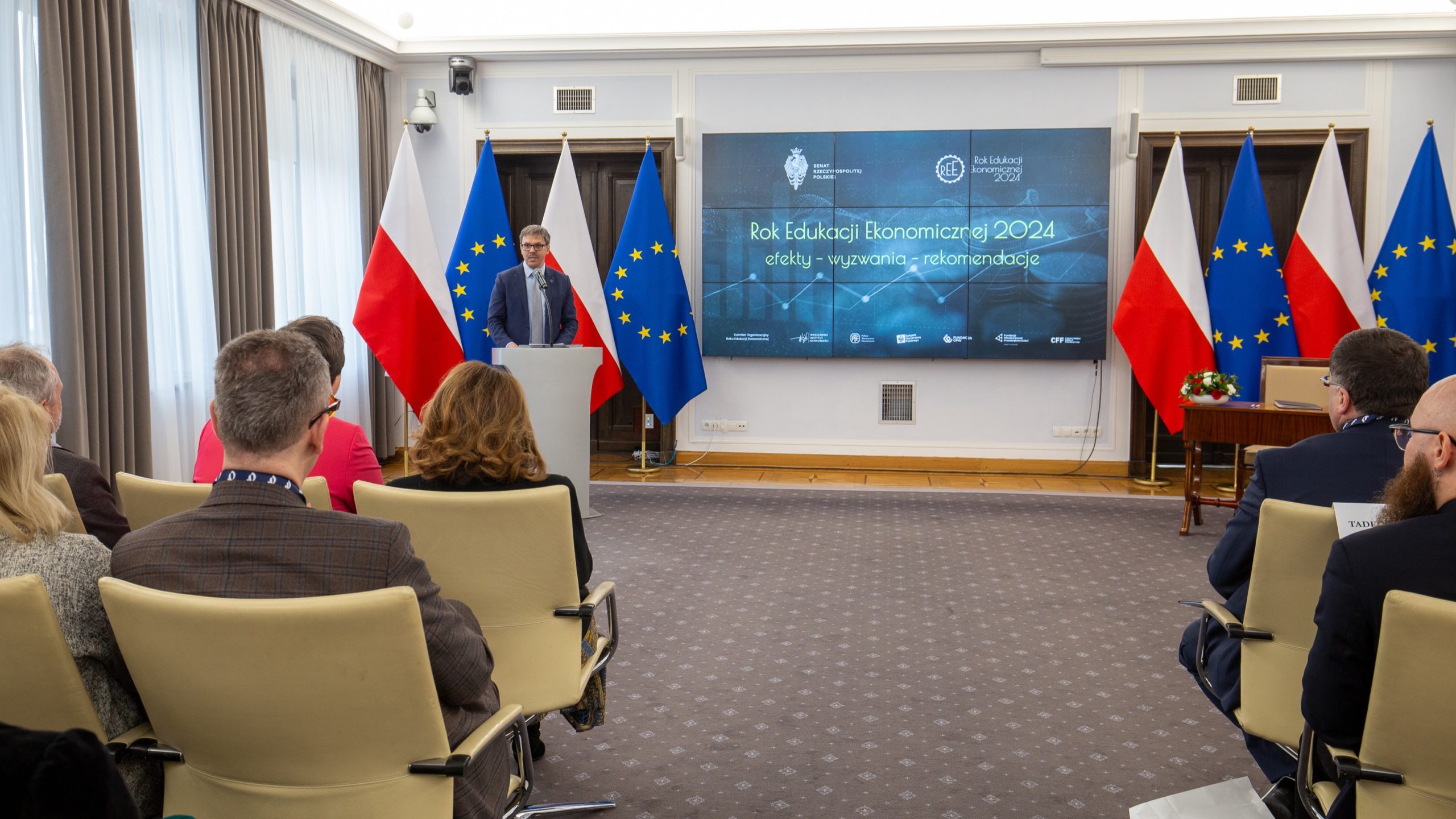 Jednym z przesłań REE 2024 pozostających z nami jest „Praca-Oszczędzanie-Inwestowanie” a rozpoczynający się rok 2025 to także ważna rocznica w kalendarzu edukacji ekonomicznej i rozwoju Polski – 100 lat temu powstały Szkolne Kasy Oszczędności. W 1925 r., w nawiązaniu do rekomendacji wielu ekonomistów oraz Światowego Kongresu Ekonomicznego z 1924 r., minister wyznań i oświecenia publicznego Stanisław Grabski wydał Okólnik w sprawie propagandy oszczędności w szkole, jako elementu kształtowania postaw wspierających budowanie kapitału niezbędnego dla bezpieczeństwa ekonomicznego obywateli i rozwoju gospodarki narodowej. Był to pierwszy krok do promowania idei oszczędzania wśród uczniów polskich szkół, a Polska dołączyła do grona państw, które uczą swoich najmłodszych obywateli oszczędzania. Właśnie dlatego na konferencji w Senacie zapowiedziano również realizację ogólnopolskich działań i kampanii promujących w 2025 r. idee oszczędności i budowania krajowego kapitału