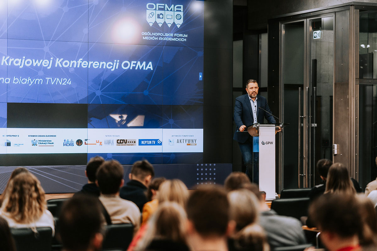 Michał Polak, wiceprezes WIB mówił o potrzebie uwrażliwienia mediów na tematy związane z edukacją ekonomiczną i europejską. – Podczas OFMA łączymy spotkania inspiracyjne z ludźmi mediów z wątkami związanymi z edukacją finansową i obywatelską. Wierzymy, że te dwie płaszczyzny się przenikają i są nieodłącznym elementem świata, który należy tłumaczyć swoim czytelnikom i odbiorcom. Dzięki temu, chętniej będziecie podejmować tę tematykę w przyszłości czując się odpowiedzialnymi za szerzenie rzetelnej wiedzy o ekonomii i wartościach europejskich – zwrócił się do publiczności Michał Polak.
