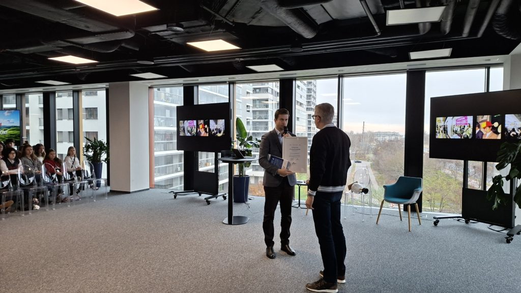 Młodzież odwiedziła siedzibę Banku Pekao S.A., który jest partnerem projektu „Przygody Przedsiębiorczego Dżeka”. Na miejscu oprócz spotkania z przedstawicielami zarządu banku i Fundacji Banku Pekao S.A., czekały na nich warsztaty dotyczące „Chindōgu – japońskiej sztuki tworzenia wynalazków”, które poprowadził Paweł Orleański, znany szerokiej publiczności z prowadzenia programu popularnonaukowego „Galileo Polska” oraz warsztaty poświęcone „Kakeibo, czyli japońskiej sztuce oszczędzania”, których zasady przybliżył ekspert banku.