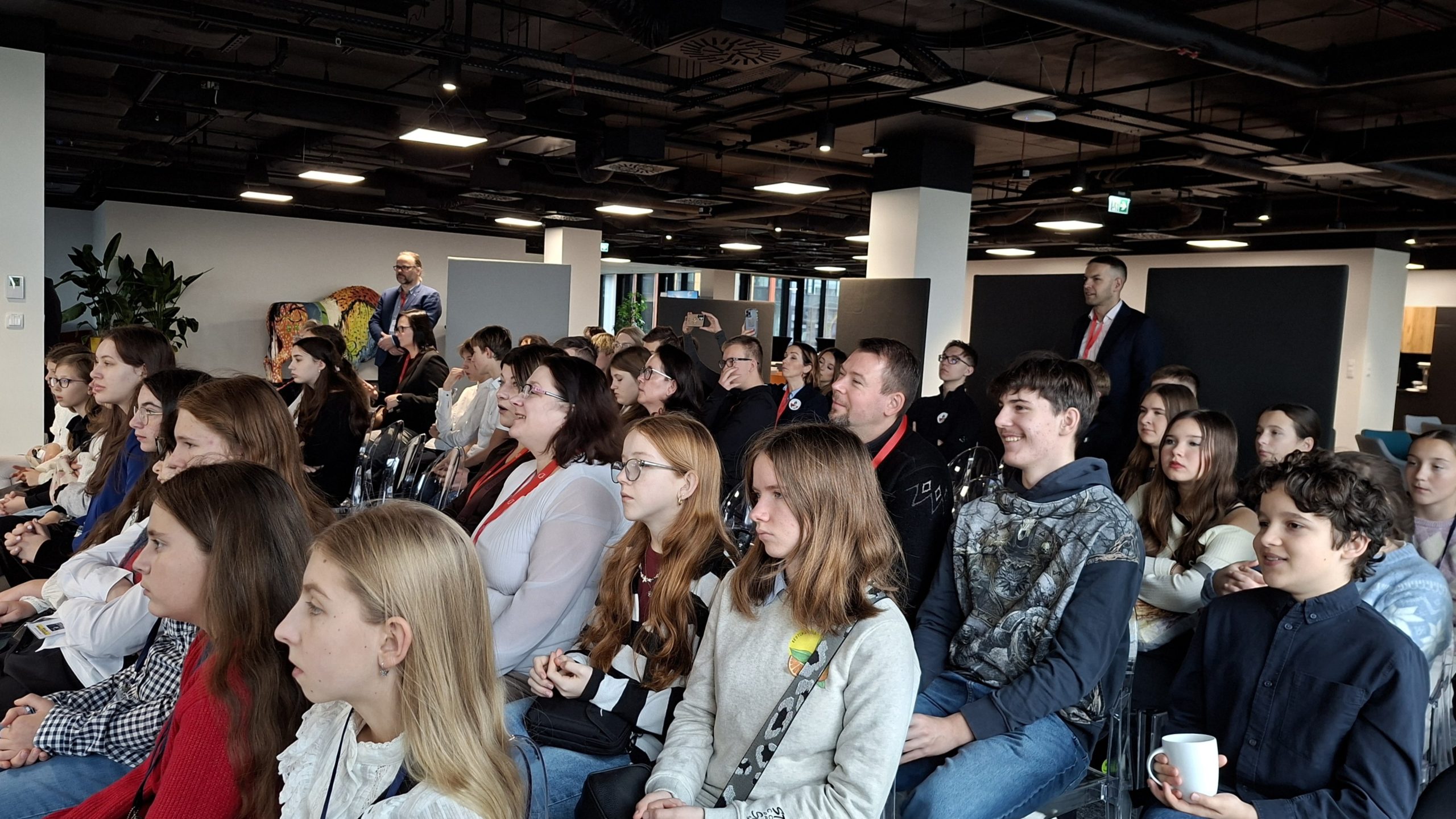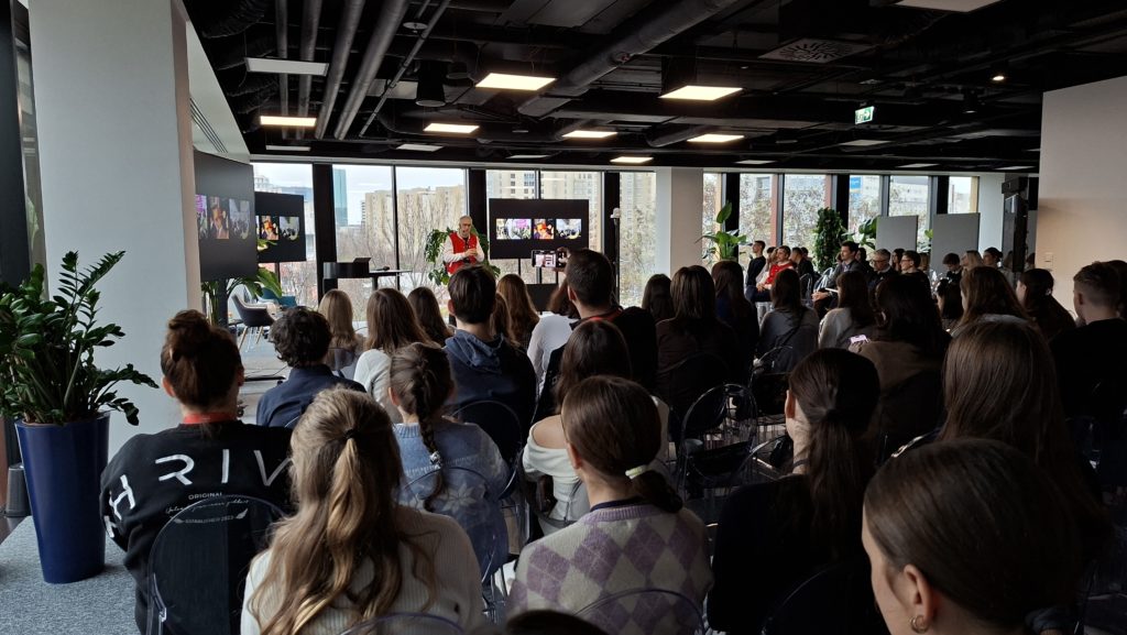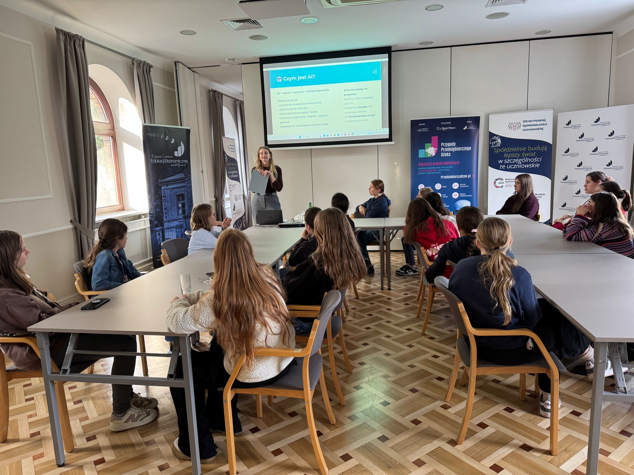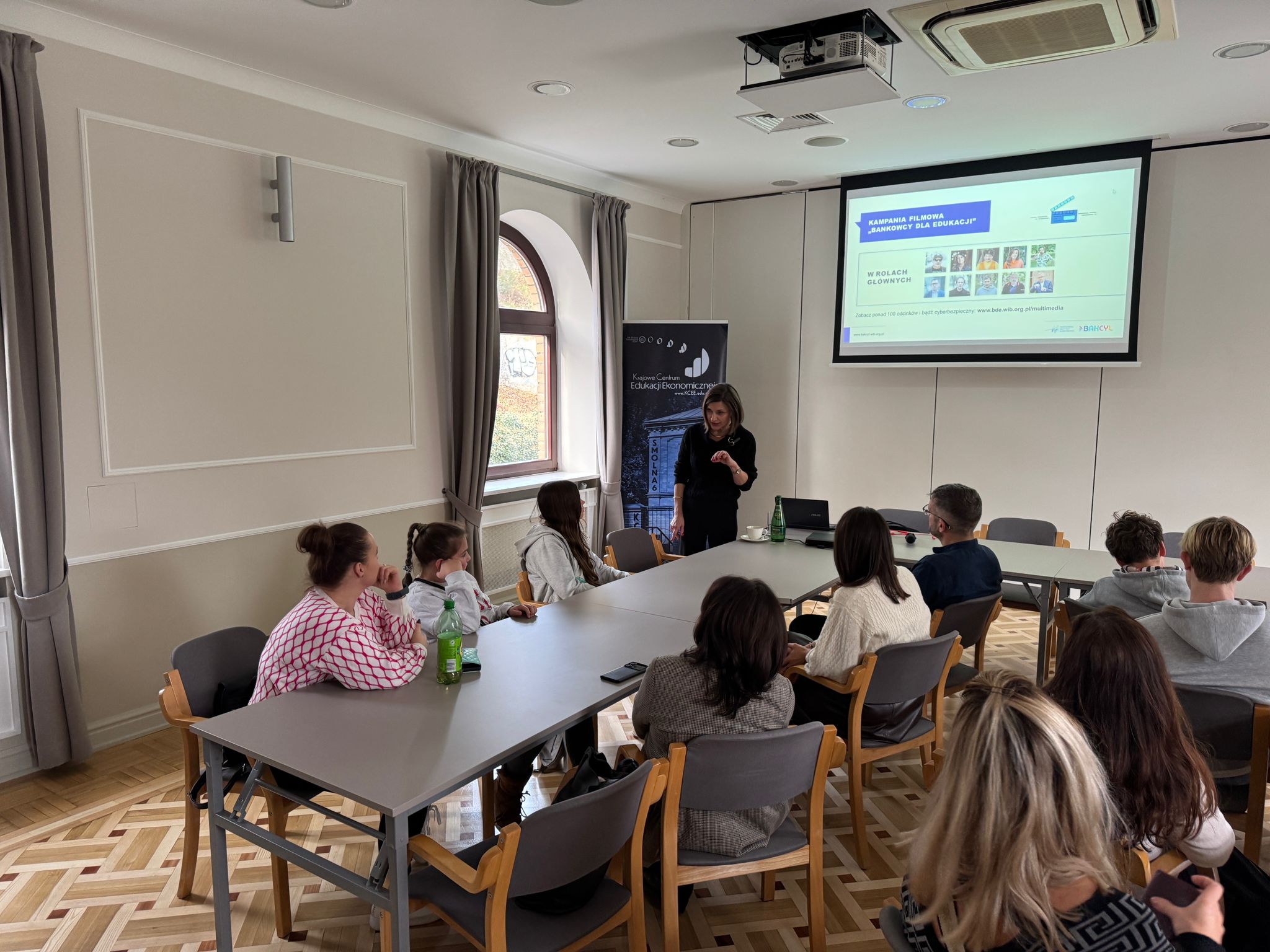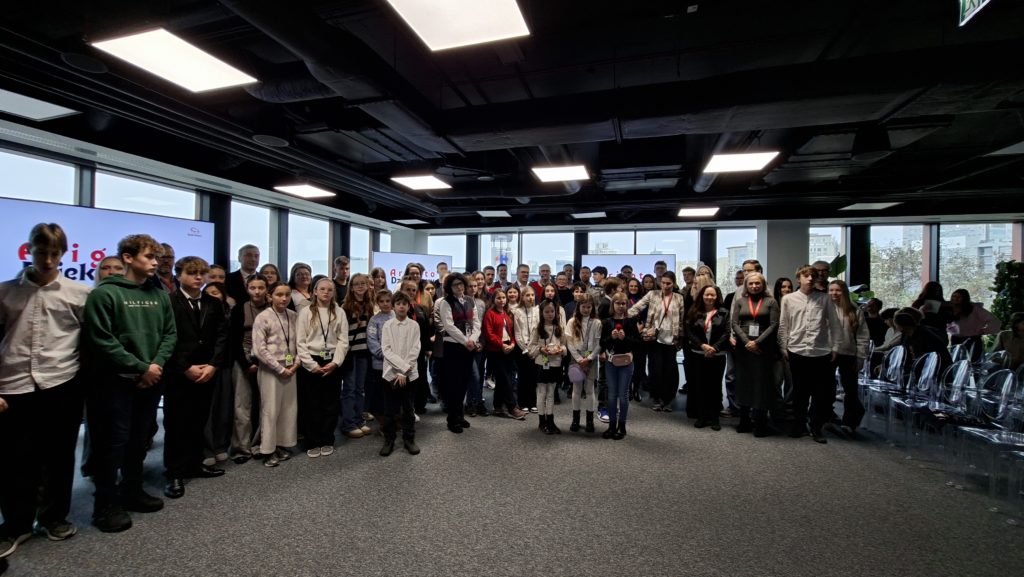 Wizyta uczniów szkół polonijnych w Polsce rozpoczęła się od odwiedzenia siedziby Krajowego Centrum Edukacji Ekonomicznej, gdzie uczestniczyli w specjalnie przygotowanych warsztatach edukacyjnych poświęconych m.in. historii polskiej i młodzieżowej przedsiębiorczości, cyberbezpieczeństwa oraz spółdzielczości uczniowskiej.