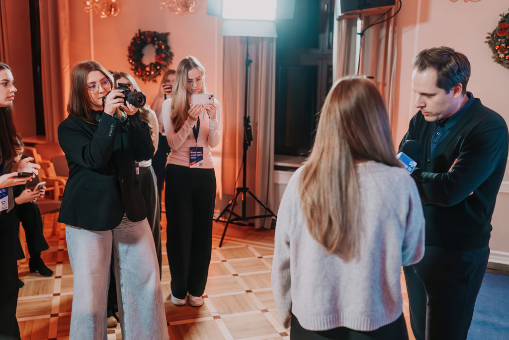 Gościem specjalnym otwarcia wydarzenia był redaktor Patrycjusz Wyżga (Grupa WP) – tym razem to on odpowiadał na pytania młodych dziennikarzy. Nie zabrakło pytań m.in. o to, jak w ciekawy sposób robić dłuższe formy dziennikarskie, jak zainteresować treściami odbiorców i prowadzić rozmowy w angażujący sposób, czy jak ważna jest odpowiedzialność w pracy dziennikarza. Redaktor Wyżga podzielił się swoimi doświadczeniami pracy w redakcjach ogólnopolskich mediów oraz nad autorskimi formatami w internecie.